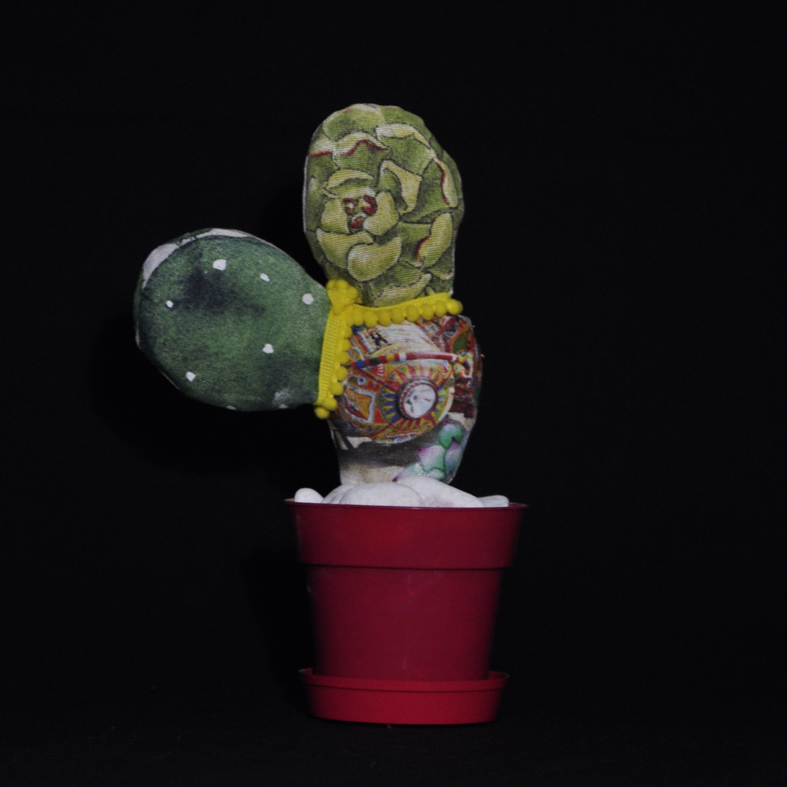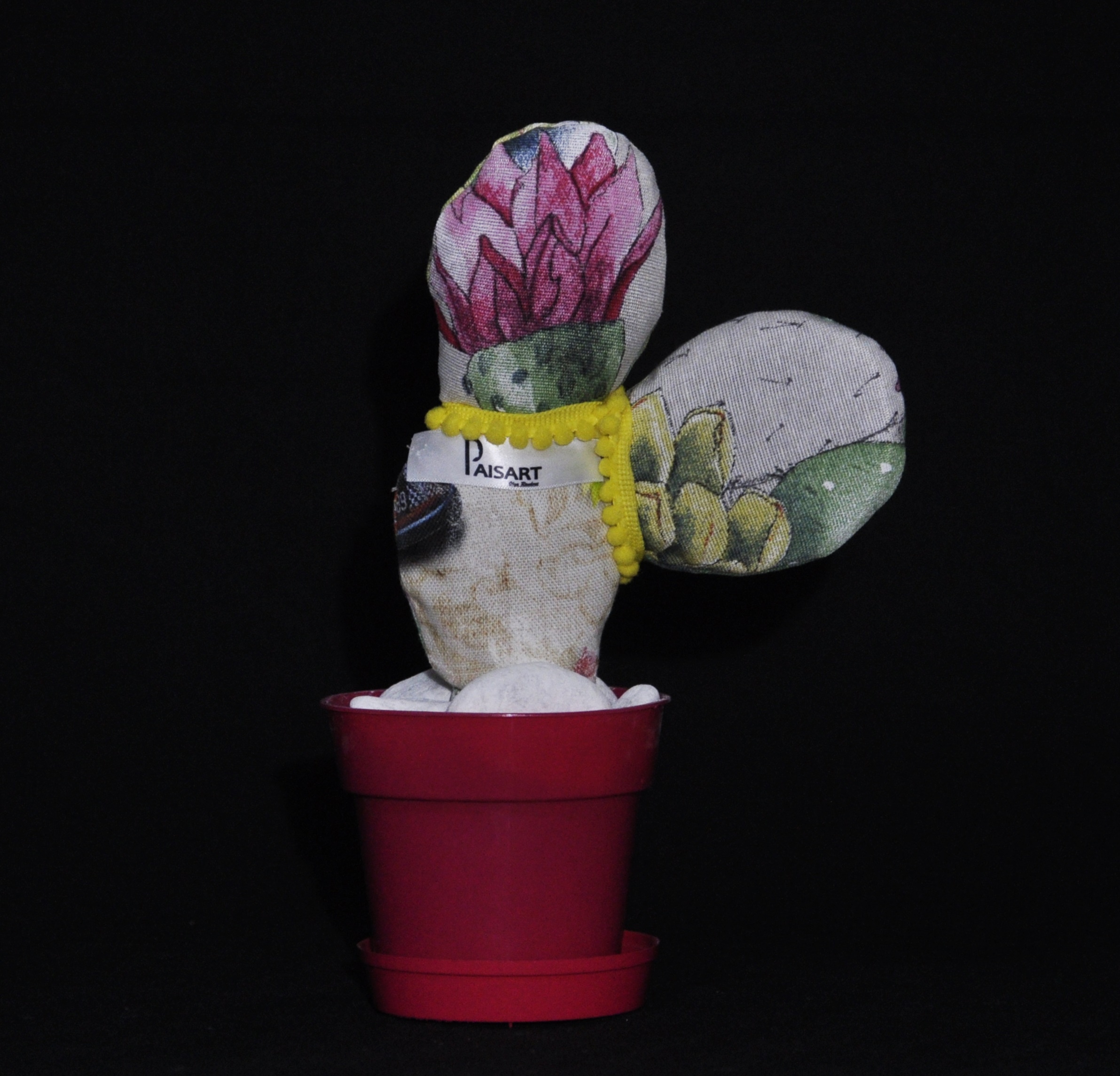 Pala in tessuto stampato a fantasia come da foto ornata con frangia e pon pon gialla .