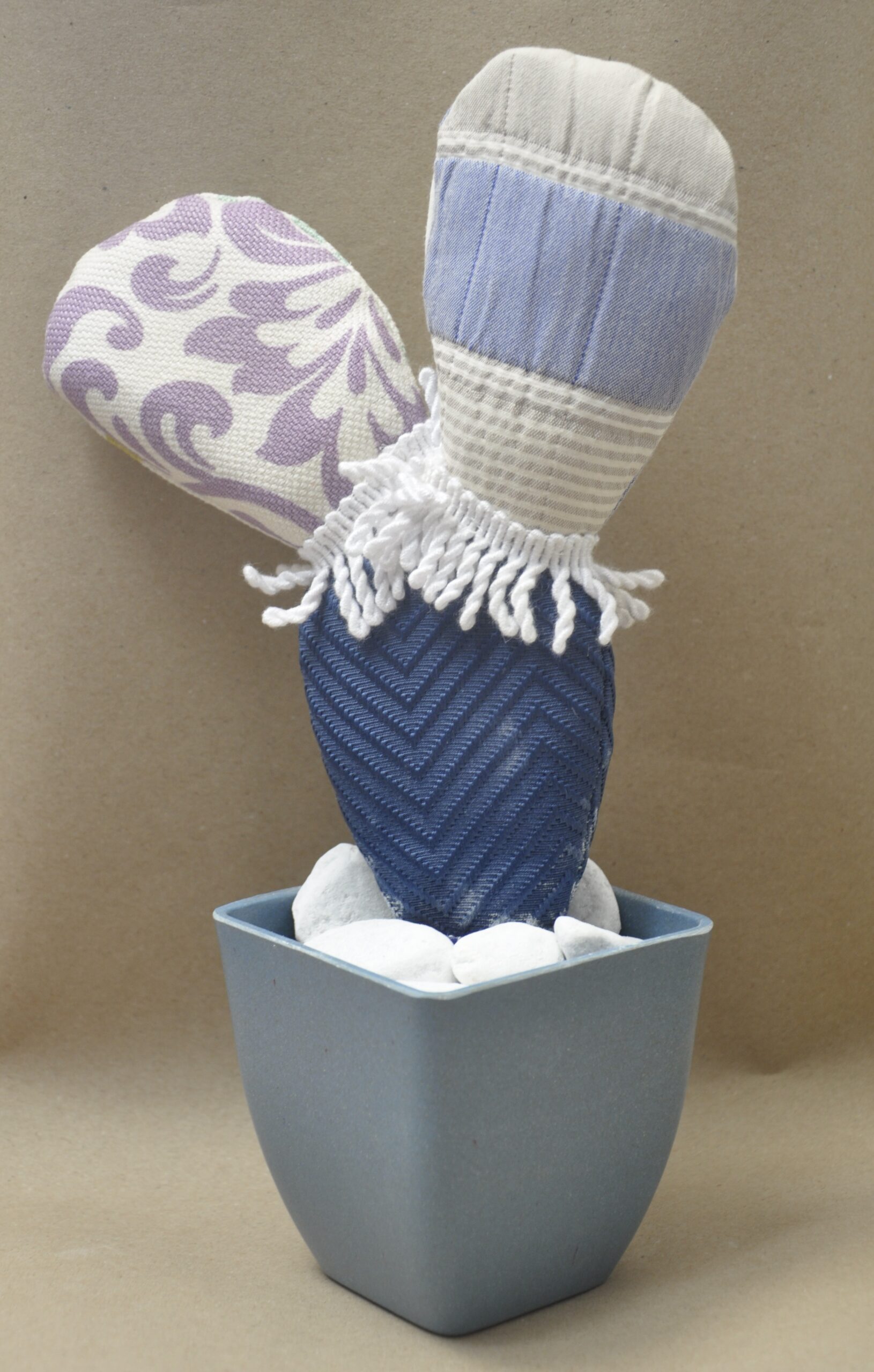 Vaso in plastica blu. ( fornito con argilla espansa e sassolini bianchi)
